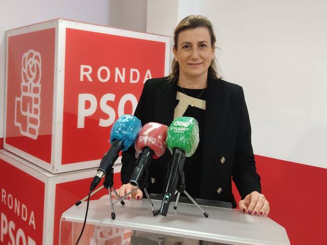 La portavoz municipal socialista, Isabel Aguilera, ante la prensa / PSOE de Ronda