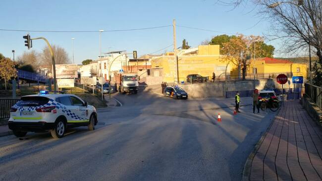 Control de la Policía Local y Nacional en Linares durante uno de los cierres perimetrales de la ciudad. / Ayuntamiento de Linares (Facebook)