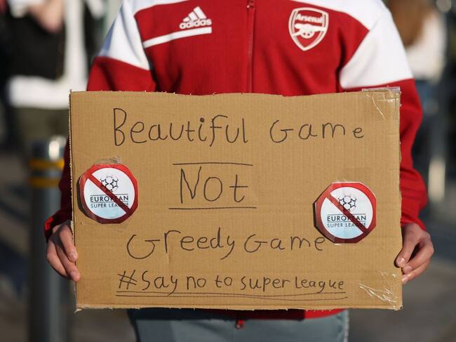 Un aficionat de l'Arsenal amb un cartell contra la Superlliga Europea(Getty Images)