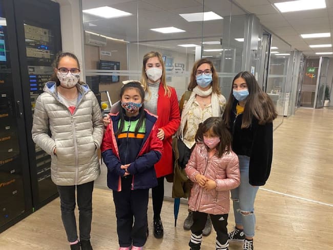 Las dos profesoras del colegio Dominicas y cuatro de sus alumnas posan en las instalaciones de la SER / Cadena SER