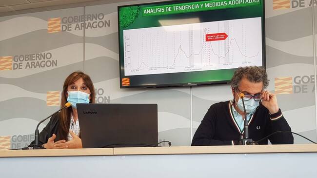 La consejera de Sanidad del Gobierno de Aragón, Sira Repollés, y el director general de Salud Pública, Francisco Javier Falo, en rueda de prensa. / GOBIERNO DE ARAGÓN
