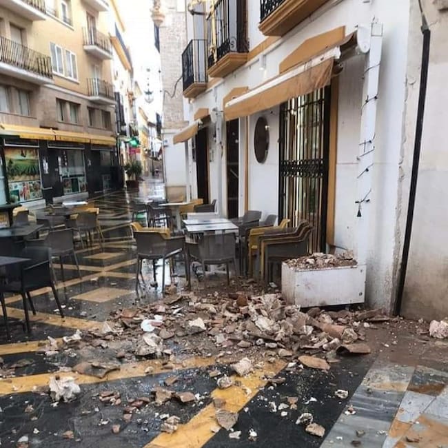 Cae una cornisa sobre la terraza de un bar de Lorca sin causar heridos. / AYUNTAMIENTO LORCA