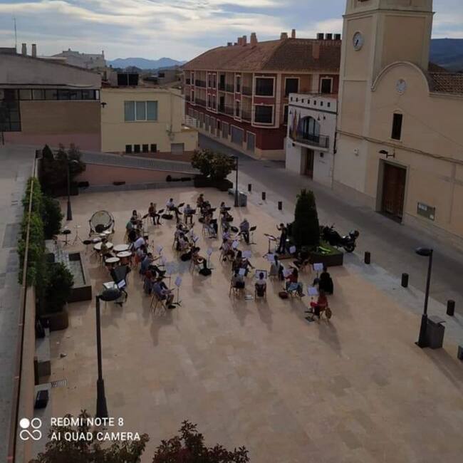 La Sociedad Unión musical de Cañada ha tomado por local de ensayos la Plaza del Ayuntamiento. El lugar utilizado en tantas ocasiones para realizar emotivos e intensos conciertos se aprovecha para que los músicos y músicas puedan ensayar con el distanciamiento necesario y con la garantía de que todos los instrumentos puedan sonar de forma conjunta. Estas audiciones se podrán mantener durante los próximos meses de lo que resta de primavera y verano.