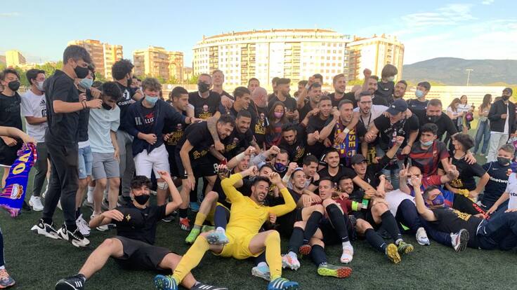 A la conclusión del partido disputado esta tarde en el estadio municipal “Nuevo Pepico Amat” ante la U. D. Alzira y que ha acabado con empate a cero, tanto los componentes de la primera plantilla azulgrana como los directivos, han celebrado el ascenso sobre el terreno de juego con buena parte del millar de aficionados que se han dado cita en las gradas.