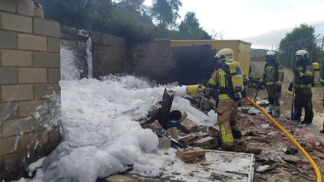 Los Bomberos desplazados desde Nanclares de Oca y Espejo han conseguido sofocar el fuego con rapidez y que no se extendiera a otra instalación aledaña donde están esos elementos pirotécnicos finalizados y que suponía un gran peligro.