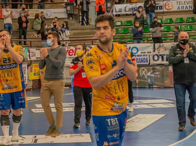 El central durante la vuelta de honor al Príncipe en en reciente encuentro ante Bidasoa. / Imagen facilitada