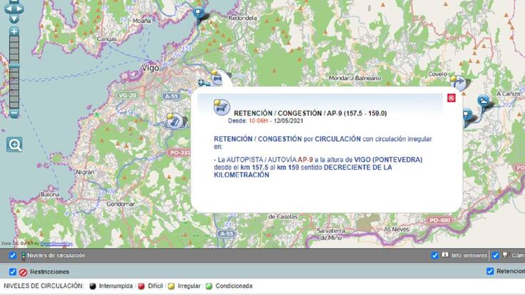 Así, al igual que otros días, las retenciones y filas de coches vuelven a verse tanto en la autopista como en la carretera del Tranvía. De hecho, la propia Dirección General de Tráfico ha informado a través de su web de que hay "condiciones difíciles" en la circulación en la AP-9, entre los kilómetros 157 y 159, en sentido decreciente desde primera hora de la tarde.
