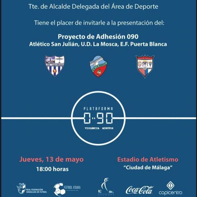 La ‘Plataforma 090’, proyecto del Área de Deporte para erradicar la violencia en el fútbol base malagueño, da un nuevo paso en su tarea formativa y de compromiso con los principales valores deportivos en el fútbol con el proyecto de adhesión de clubes como el Atlético San Julián, la Unión Deportiva La Mosca y La Escuela de Fútbol Puerta Blanca.