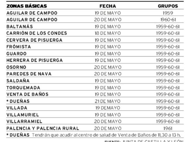 La semana que viene, la que va del 17 al 23 de mayo, se van a producir importantes novedades en la vacunación contra el COVID-19 en la provincia de Palencia, incluida la capital. En las últimas horas la Junta de Castilla y León difundía el calendario de vacunaciones. Atención Primaria tiene previsto inocular la próxima semana 5.000 dosis de vacuna, según los datos oficiales de la administración autonómica. Además el calendario presenta novedades con respecto a las franjas poblaciones a vacunar.