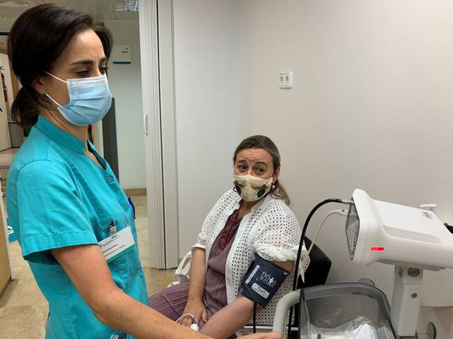 Una enfermera tomando la tensión a una paciente. / Hospital Quirón Salud