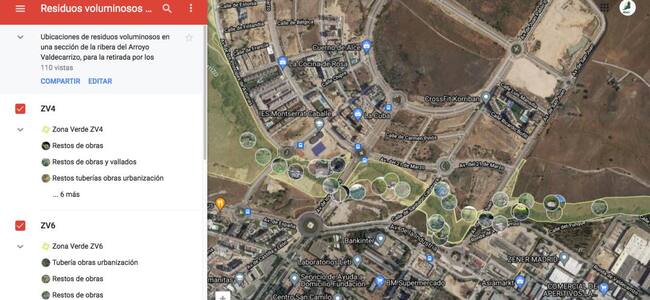 Sin embargo, durante las labores de limpieza se observaron gran cantidad de escombros y otros residuos peligrosos como vallados metálicos en muy mal estado que, por su tamaño, no era posible su recogida por los participantes de la actividad y fueron fotografiados y geolocalizados en el mapa de acceso público.