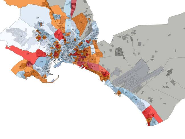 Mapa con la renta por alquileres de Palma. / Cort