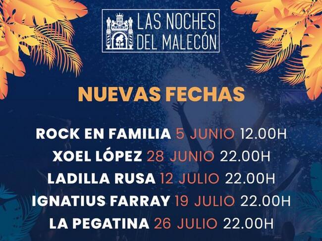 En un comunicado, publicado en sus redes sociales, la organización de Las Noches del Malecón ha dado a conocer el aplazamiento de los eventos que estaban programados esta semana: Xoel López, Ladilla Rusa, La Pegatina, Rock en Familia e Ignatius Farray.