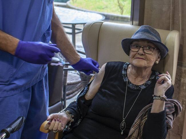 Una mujer recibiendo la vacuna en una residencia de Asturias. / Getty Images
