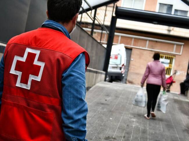 Voluntario de Cruz Roja ofreciendo ayuda a una familia / Cruz Roja Española