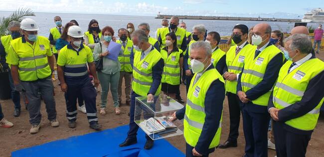 Colocación de la primera piedra simbólica de las obras de la playa de Valleseco, en Santa Cruz de Tenerife / Cadena SER