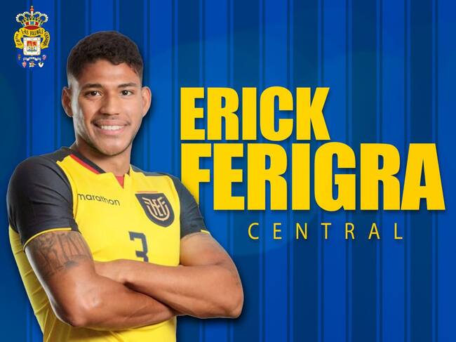 Erick Ferigra nació en Ecuador hace 22 años. El futbolista llega libre a la UD Las Palmas y vestirá la camiseta amarilla hasta 2024. Según se indica desde el club, el central destaca por su velocidad y buena salida de balón, además de su capacidad de anticipación.