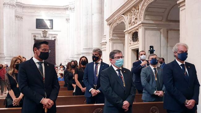 La misa del Corpus en la Catedral de Granada, el 3 de junio, fue el único momento de las últimas semanas en el que los concejales del PP en el Ayuntamiento de Granada accedieron a estar en el mismo lugar que el alcalde, Luis Salvador, de Ciudadanos. El al / Rafael Troyano
