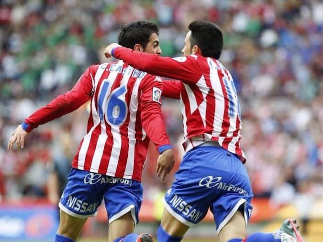 Carlos Castro e Isma López celebran un gol con el Sporting / Twitter Isma López