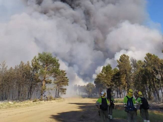 El incendio de Serradilla del Arroyo (Salamanca) "no tiene llama", según la actualización de las 09.00 horas ofrecida por la Delegación del Gobierno en Castilla y León después de las tareas de extinción que han continuado durante la noche.