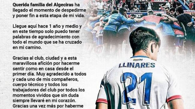 Primera despedida en el Algeciras Club de Fútbol tras anunciar el defensor Marc Llinares su salida a través de las redes sociales.