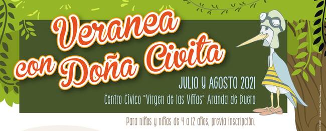 Los niños arandinos entre 4 y 12 años podrán volver a veranear con Doña Civita. La concejalía de cultura del Ayuntamiento de Aranda vuelve a realizar este programa de actividades que contemplan cuenta cuentos y semanas temáticas durante los meses de julio y agosto. Una oportunidad maravillosa de entretenerse aprendiendo con todos los actos supervisados y desarrollados por el personal del Centro Cívico.