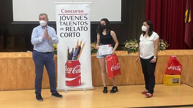 Por su parte, Juan Francisco Aragón, en representación de la Fundación Coca Cola, explicaba la transcendencia del concurso, en el que han participado, en sus 60 ediciones, millones de alumnas/os, con el objetivo de fomentar la escritura y la literatura, “… En torno a 11 millones de estudiantes han pasado por el concurso… Es una satisfacción entregaros un premio, en este caso a vuestra compañera… De lo que se trata es de tener ese cariño a la escritura, a la literatura, que, en gran parte, se debe a vuestros profesores, que son los que, realmente, impulsan todo este programa a nivel provincial y nacional… Animaros, desde Coca Cola, a dedicarle un tiempo a la escritura y a la literatura… Cuanto más culto eres, más libre eres en el futuro… Si puedes imaginarlo, puedes contarlo. Dar rienda suelta a vuestra imaginación y después contarlo…”.