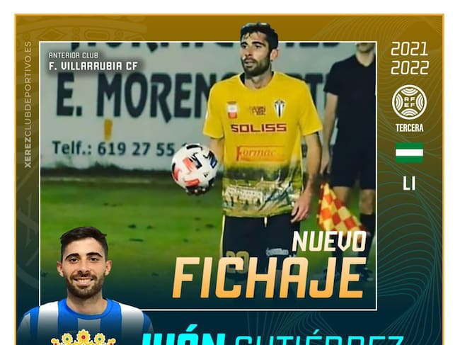El Xerez CD ha hecho oficial el fichaje del defensa Iván Gutiérrez (31/08/1998, Jerez de la Frontera). El joven futbolista zurdo, que ocupará plaza sub-23, "muestra una polivalencia que le permite actual tanto de lateral como de extremo y destaca especialmente por una vocación ofensiva plena que nutre con asistencias y goles", anuncian desde el club en su sitio web. Procede del Villarrubia CF de Segunda División ‘B’.