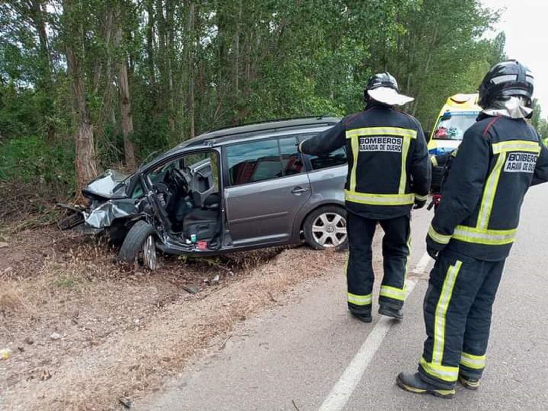 Los bomberos de Aranda han tenido que liberarle de la estructura del vehículo donde había quedado atrapado