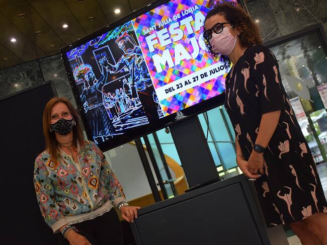 La cònsol menor de Sant Julià, Mireia Codina, i la cap de Cultura, Laura Rogé, durant la presentació de la festa major de la parròquia. / M.P. (ANA)