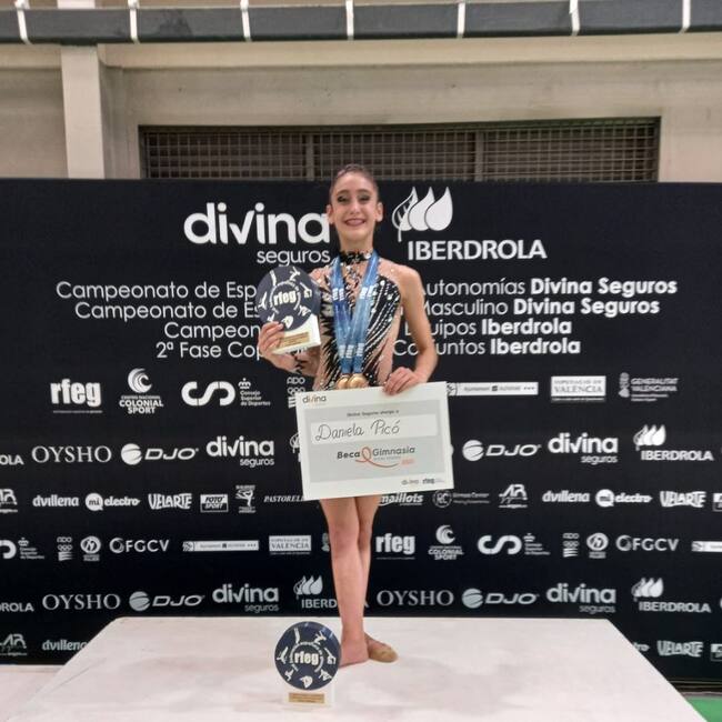 Imparable la gimnasta alcoyana del CGR Alcoy Daniela Picó, que suma a su palmarés un nuevo Campeonato de España, esta vez en categoría infantil. A este título se suma el conquistado por Comunidades con siguiendo el primer puesto a través de las notas de las gimnastas valencianas, entre ellas Daniela y María García. Daniela recibe también la beca Divina Pastora como campeona de España.
