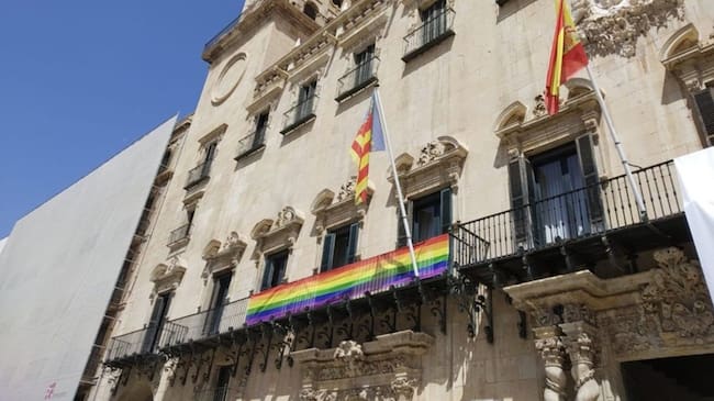 Fotografía de Ayuntamiento de Alicante con una bandera LGTBI / Radio Alicante