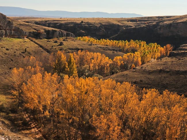 La imagen que muestra un espectacular paisaje otoñal donde se observa la curva sinuosa del cauce del río, reflejando a la perfección que un río es algo más que el agua que se intuye, integrándose de forma armoniosa en este ecosistema natural lleno de biodiversidad, han informado a Europa Press fuentes de la CHD.