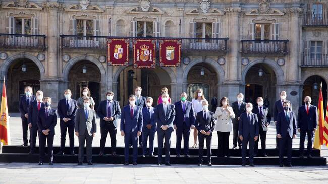 La Plaza Mayor de Salamanca ha acogido la llegada de los presidentes autonómicos a la XXIV Conferencia de Presidentes, con la presencia del Rey Felipe VI, quién ha llegado a las 09.30 horas al ágora.