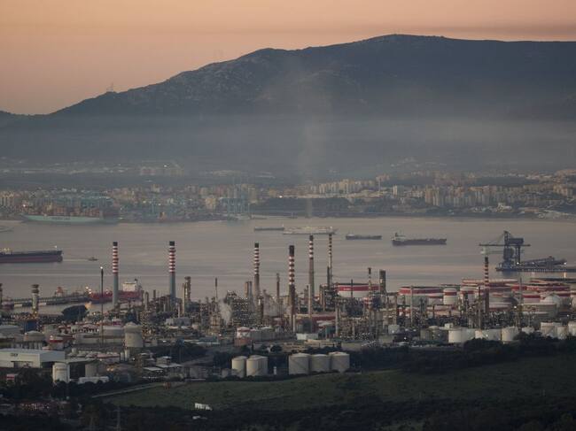 Una imagen de la refinería de Cepsa con el Puerto de Algeciras al fondo. / Getty Images