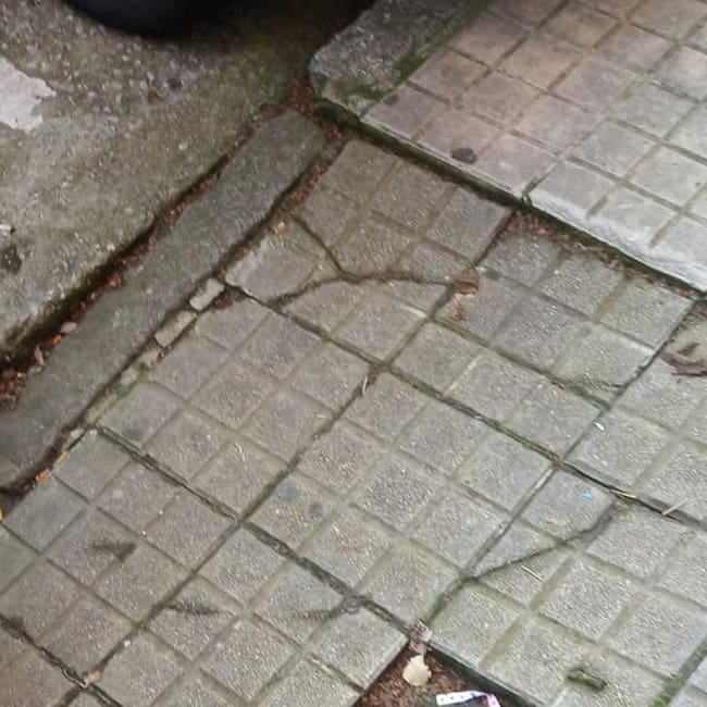 Desde el grupo político demandan que las aceras de la margen izquierda de la vía están hundidas y llenas de enormes agujeros por donde entran las ratas a los sótanos de las viviendas y los locales, por lo que piden con urgencia una solución.