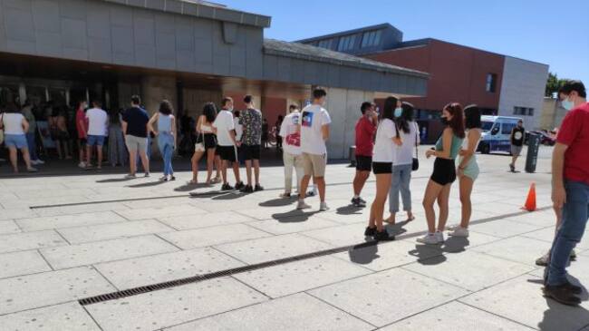 Imagen de jóvenes a la espera de recibir la vacuna, hace unos días en la puerta de Consultas Externas del Hospital General de Ciudad Real / Cadena SER