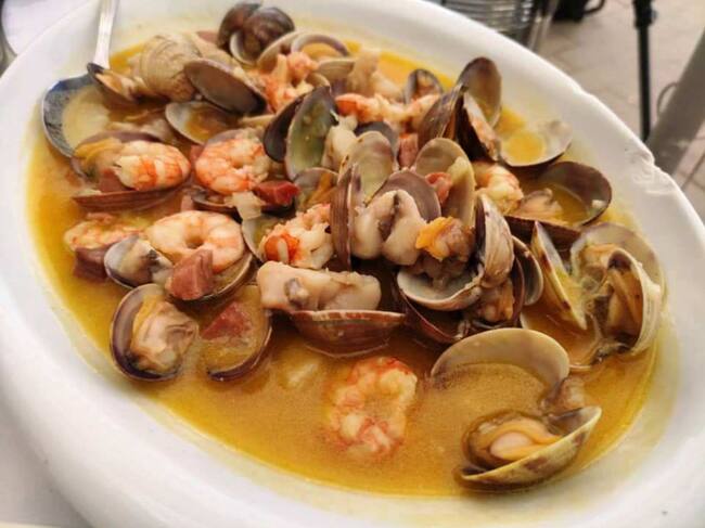 Hasta de cuatro formas distintas ofrecen almejas como entrante: a la marinera, al vapor, a la andaluza (18 euros la ración) y a la abuela (26). Al vapor y al ajillo las coquinas (16 euros); pulpo a la gallega o en aceite y huevas (14), calamares rellenos y jamó ibérico (18), queso y huevos de choco.