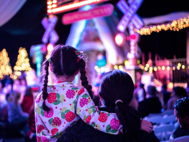 Madre e hija esperando para subirse en una atracción. / Getty Images