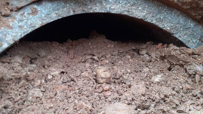 Uno de los tubos anegados por barro y piedras / Ayuntamiento de Mota del Cuervo
