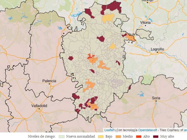 Mapa de riesgo epidemiológico de la provincia de Burgos en la última semana / Junta de Castilla y León