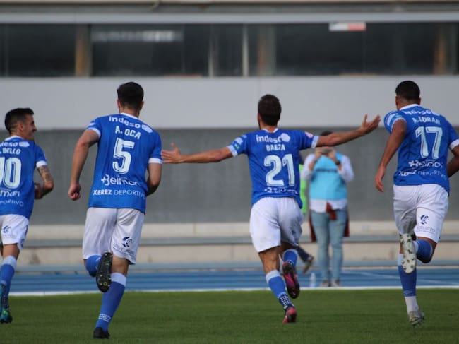 Jugadores del Xerez DFC celebrando el gol de Baeza / Teresa Salas