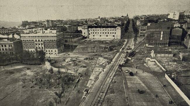 Tramo final de la Gran Vía en su llegada a Plaza de España. Año 1931, al término de las obras