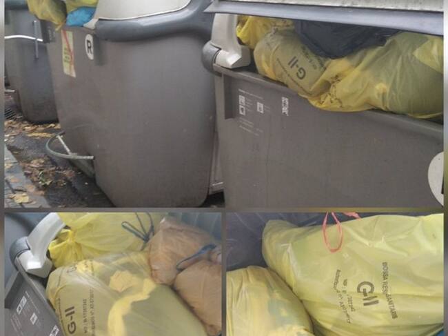 Amb diverses fotos amb els contenidors plens de bosses de plàstic grogues amb la llegenda 'residus sanitaris', una veïna reclamava explicacions de l'Ajuntament de Girona aquest matí, ja que aquest tipus de deixalles es retiren per un altre circuït i no es poden abocar als contenidors.