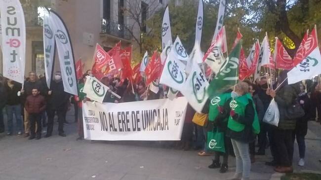 Imagen de la protesta contra el ERE de Unicaja en Albacete / Cadena SER