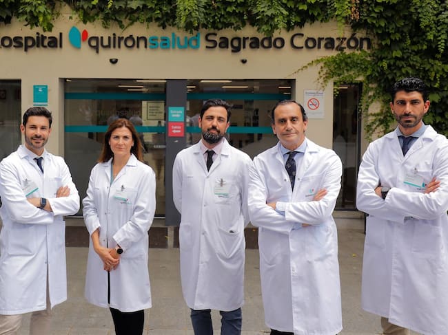 En la imagen, los responsables de las distintas áreas de la unidad de izquierda a derecha, el doctor Alberto Aliaga Verdugo, Paloma Carrasco Vergara , Isaías Alarcón del Agua (cirujano), Salvador Morales Conde y Felipe del Valle Pascual / QuirónSalud