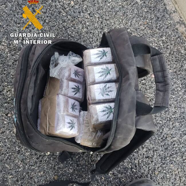 Los detenidos arrojaron por una de las ventanillas del vehículo en el que viajaban una mochila que contenía el hachís, concretamente 165 pastillas de 50 gramos de peso, al percatarse de la presencia de la Guardia Civil en un dispositivo operativo.