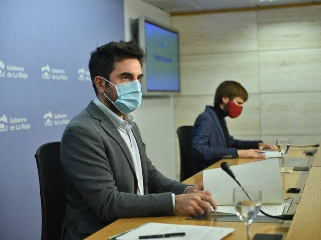 El portavoz del Gobierno, Álex Dorado, y el director general de Salud Pública, Pello Latasa. / Gobierno de La Roja