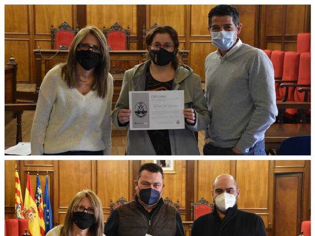Los alumnos de la EASDAlcoi, Unai Abad, Laura Diago, Sergio Buforn y Ángela Terroba también han sido premiados por colaborar en la realización de los escaparates ganadores en cada categoría.