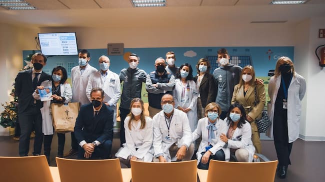Estar ingresado en un hospital siempre es algo complicado. Si además eres un niño, pues todavía más. Hace una semana, la artista Iria Blanco estuvo pintando un gran mural con los niños ingresados en la planta de pediatría del Hospital Álvaro Cunqueiro. Lo hicieron en las paredes del aula donde esos niños dan clase a diario. Son aproximadamente unos 25-30 niñas y niños. Pues en las últimas horas han recibido también un regalo maravilloso. Iago Aspas, Rubén Blanco y José Fontán encabezaron la expedición del Celta que se desplazó hasta el Cunqueiro para vivir una jornada muy especial para esas niñas y niños que pudieron ver y fotografiarse con sus ídolos. También les firmaron autógrafos y les llevaron algunos regalos adelantados de Papá Noel. Una visita tradicional en el Real Club Celta y que sorprendió a esos pequeños que pudieron estar cerca de sus ídolos. Allí también estuvieron el director general del club, Antonio Chaves, el responsable de la Fundación Celta, Germán Arteta o el vicepresidente, Ricardo Barros. Un día especial, diferente, distinto y lleno de ilusión. Seguro que no se les olvida. Ojalá se pueda repetir la visita antes de la noche mágica de los Reyes Magos.